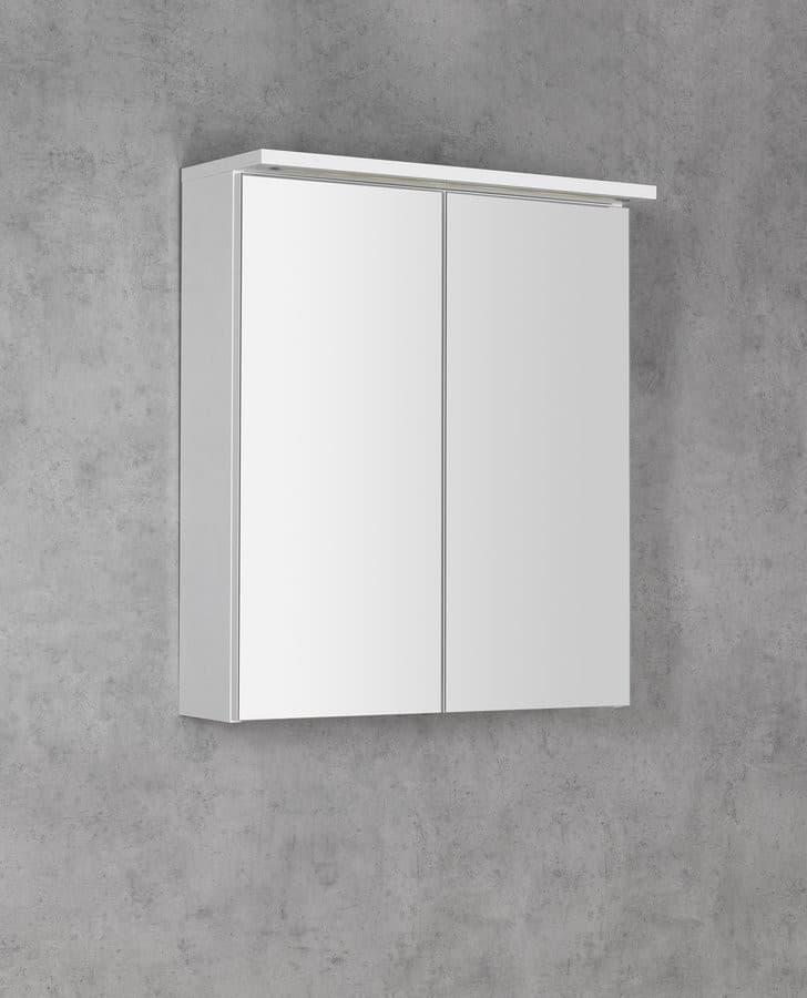 Szafki z błyszczącego białego i platynowego dębu z pięknymi ceramicznymi umywalkami. Praktyczne duże szuflady. Przedstawiamy meble VEGA i POLY, nowoczesne i wizualnie czyste meble w rozsądnej cenie.