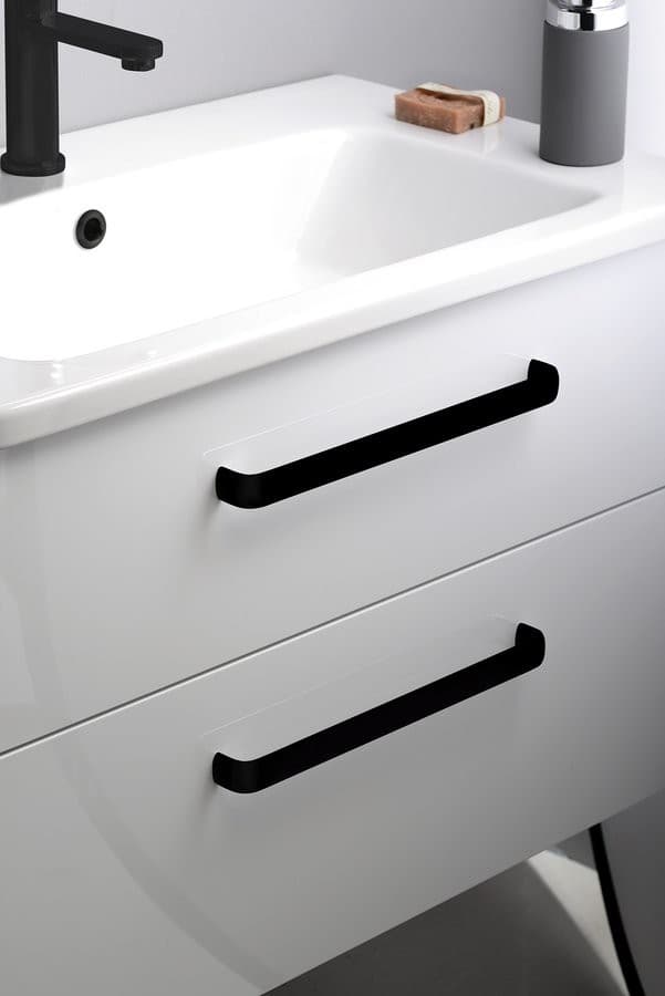 Nowoczesna linia szafek z serii THEIA podkreślona efektownymi uchwytami doskonale współgra z umywalkami ceramicznymi THALIE tworząc ponadczasowy komplet, który pasuje do każdej nowoczesnej łazienki. Kontury są wzajemnie dopasowane tworząc czysty i schludny wygląd całości.