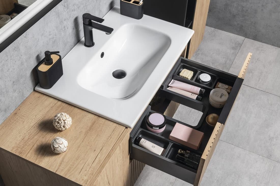 Dużym atutem jest możliwość zamówienia praktycznych organizerów LINDO oraz pojemników do przechowywania drobnych przedmiotów codziennego użytku w górnej i dolnej szufladzie. Szuflady wyposażone są w pojazdy z cichym domykiem, drzwiczki posiadają zawiasy zwalniające. Szafki umywalkowe CIRASA dobrze się komponują z uniwersalnymi słupkami o dodatkowymi szafkami z serii ESPACE
