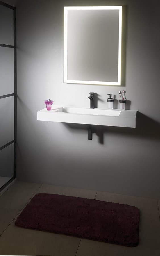 Podświetlane lustra rozświetlają łazienkę jasnym, jednorodnym światłem dzięki źródłu LED. Ich długa żywotność (ok. 30 000 godzin) i niskie zużycie to główne zalety w porównaniu z klasyczną świetlówką. Emitowane światło delikatnie i przyjemnie oświetla łazienkę. Lustro nie posiada włącznika.